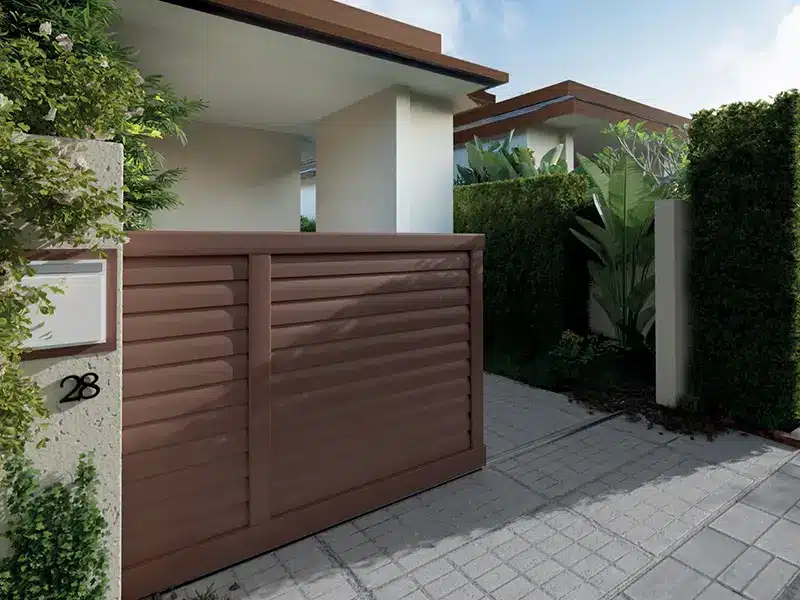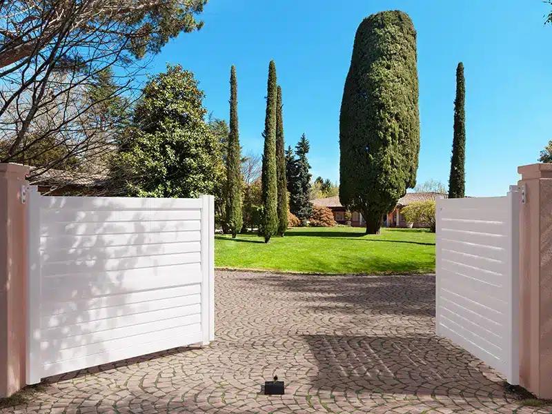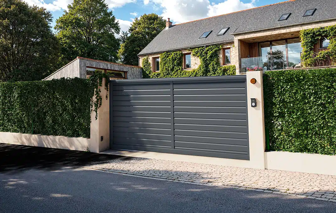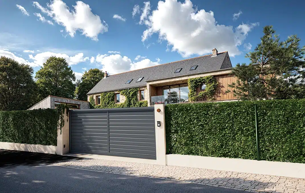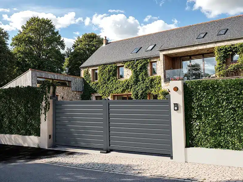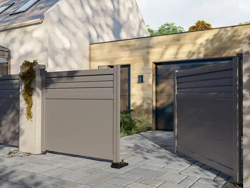 Pour une harmonie visuelle parfaite, nos clôtures brise-vent s’accordent avec votre portail pour créer un ensemble extérieur cohérent et design.